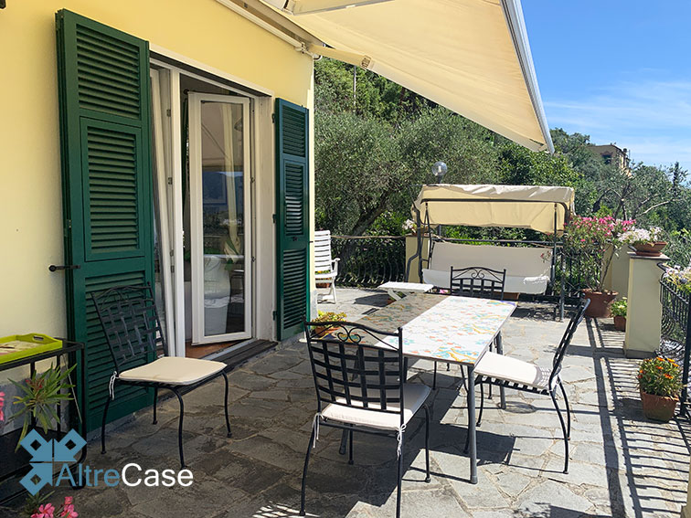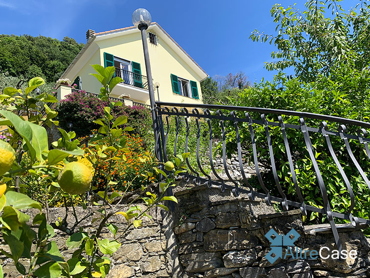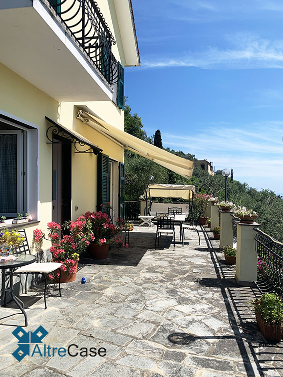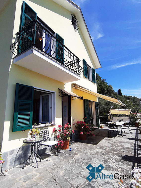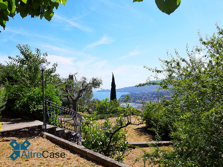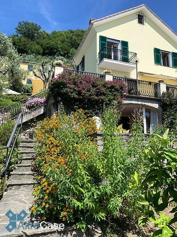 Nella elegante parte panoramica collinare di Rapallo, percorrendo via Giacomo Minzoni nella zona di San Bartolomeo fino a via Campodonico, troviamo questa bellissima villa bifamiliare immersa nella vegetazione con una vista aperta sulle colline e sul Golfo dl Tigullio con l’eccezionale vista su Portofino.