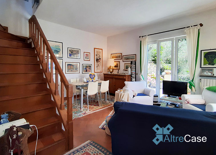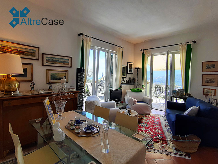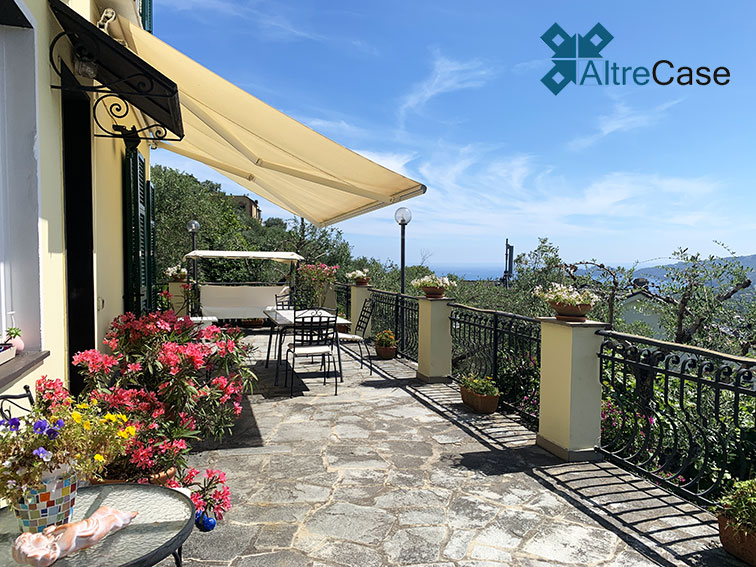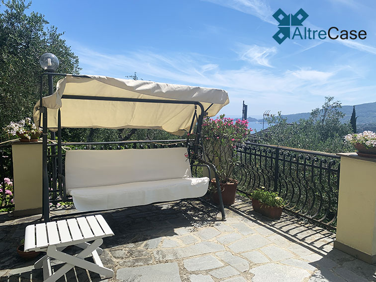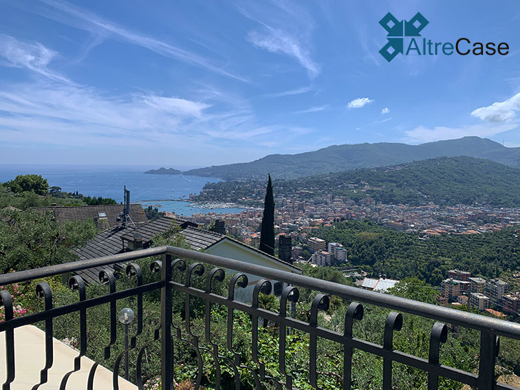 In the elegant panoramic hilly part of Rapallo, along via Giacomo Minzoni in the San Bartolomeo area up to via Campodonico, we find this beautiful semi-detached villa surrounded by greenery with an astonishing open view over the Tigullio Gulf glazing to Portofino.