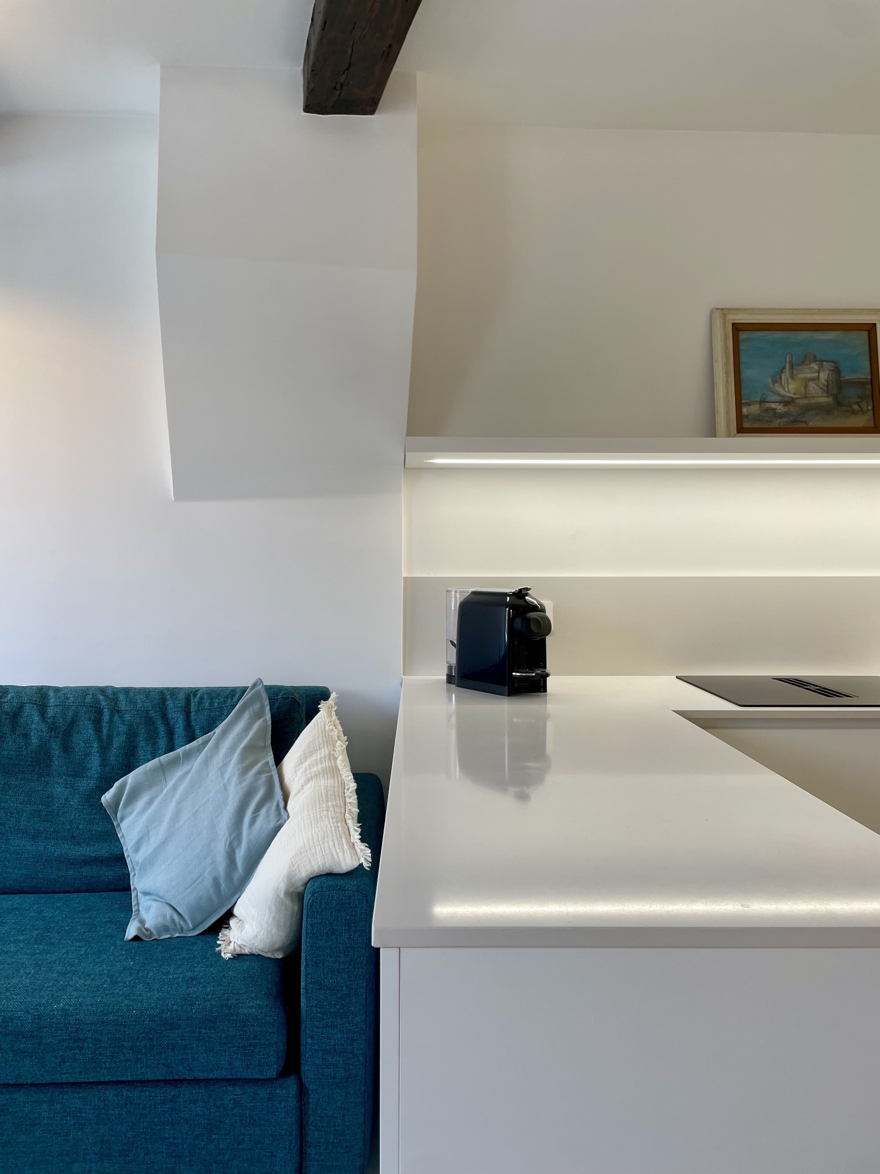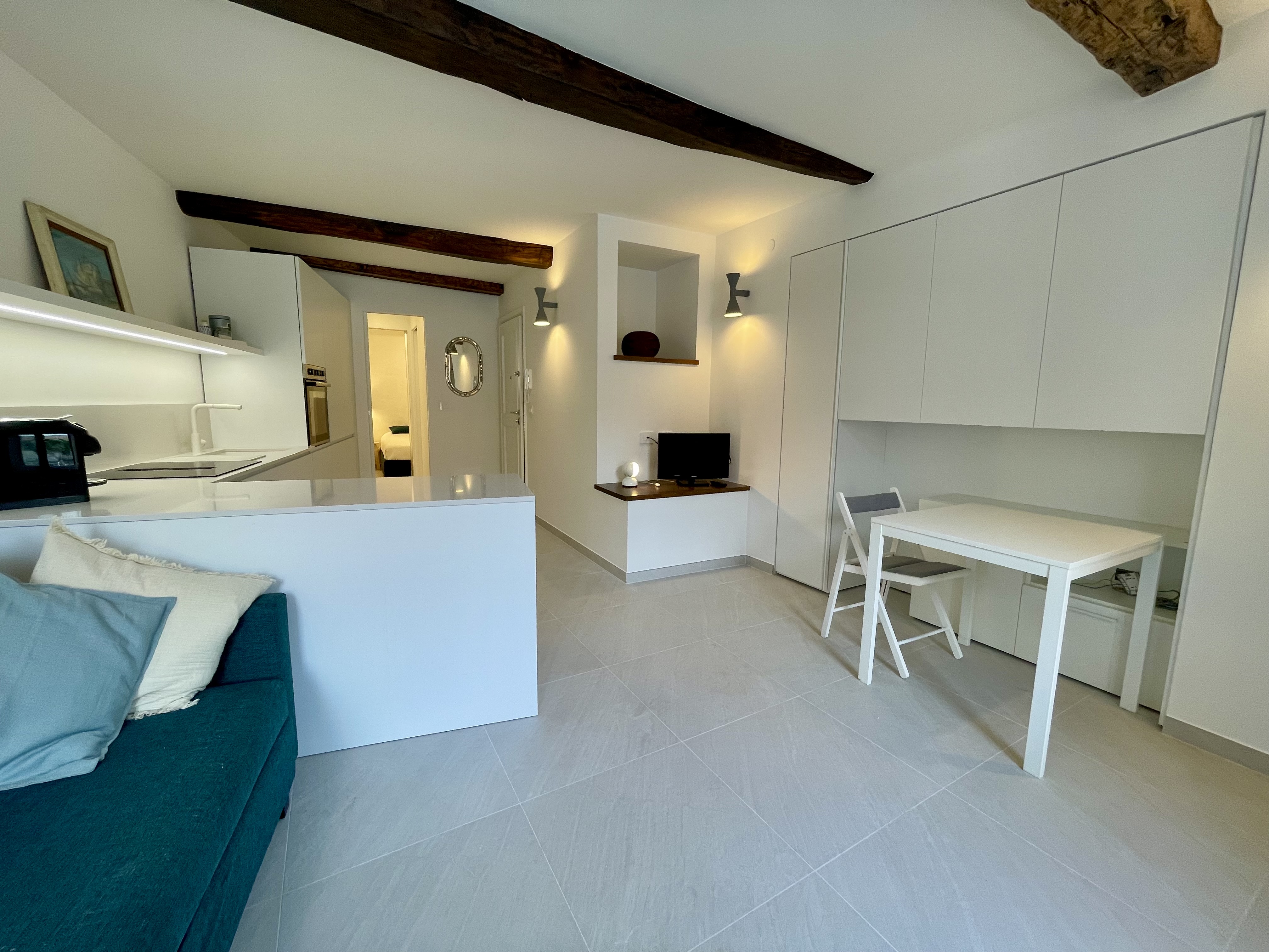 In one of the locations that Forbes ranks among the most beautiful untouched pearls of the world, this delightful finely renovated suite is offered with refinely finished spaces and all comforts. The entrance leads to the bright living area with a view of the harbour, with access to the sleeping area and bathroom through disappearing pocket doors.