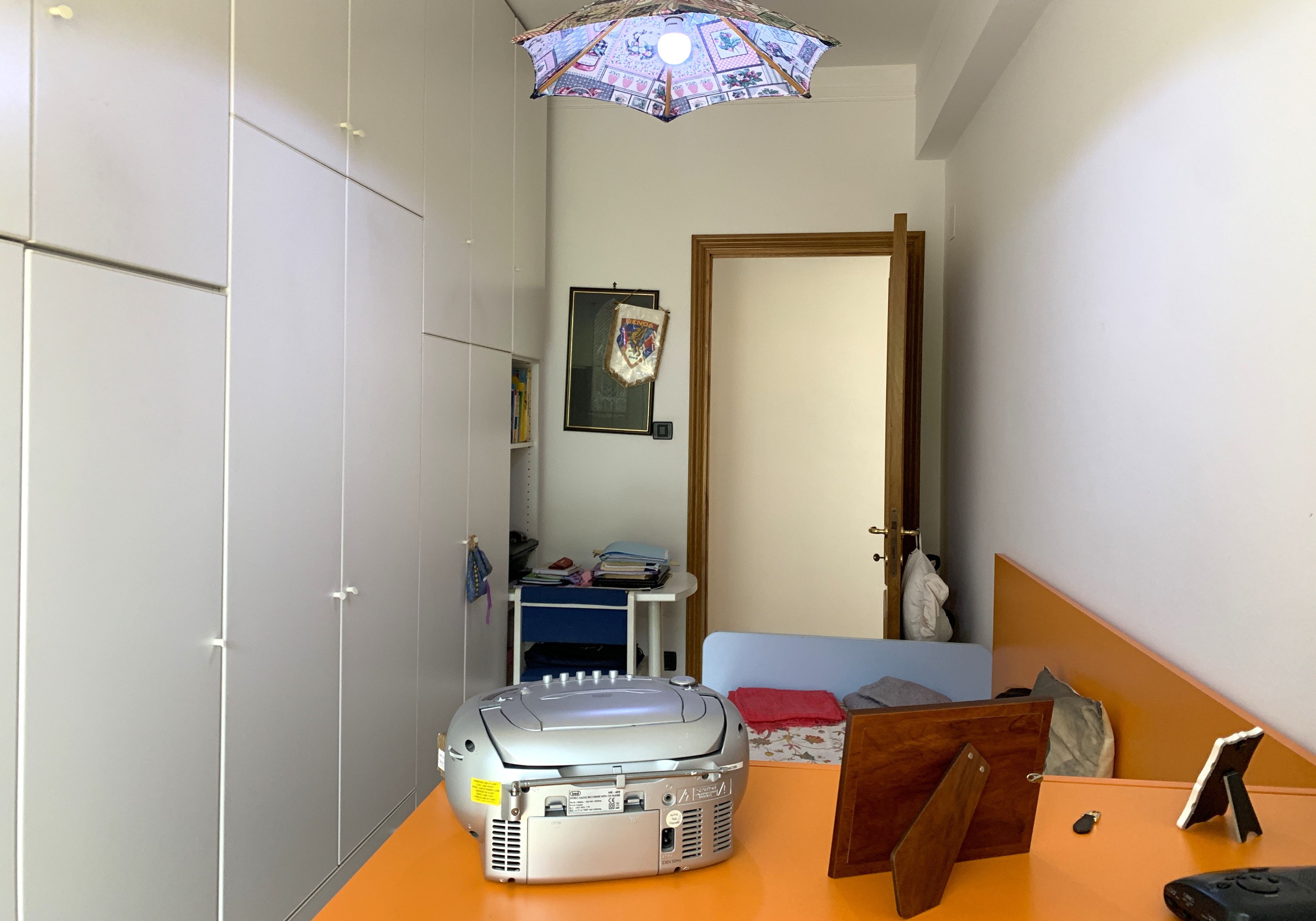 L’immobile si trova all’ultimo piano di un condominio ordinato e curato, dotato di ascensore e di posti auto nominativi in area riservata ed accessibile esclusivamente ai condomini, l’appartamento si compone da un ingresso con porta blindata, cucina abitabile con balcone, corridoio che immette nella luminosa sala con balcone, cameretta, camera matrimoniale e bagno. Al piano superiore abbiamo l’accesso alla grande terrazza panoramica di proprietà esclusiva. Le spese condominiali inclusa la quota riscaldamento ammontano a € 2700 circa all’anno.